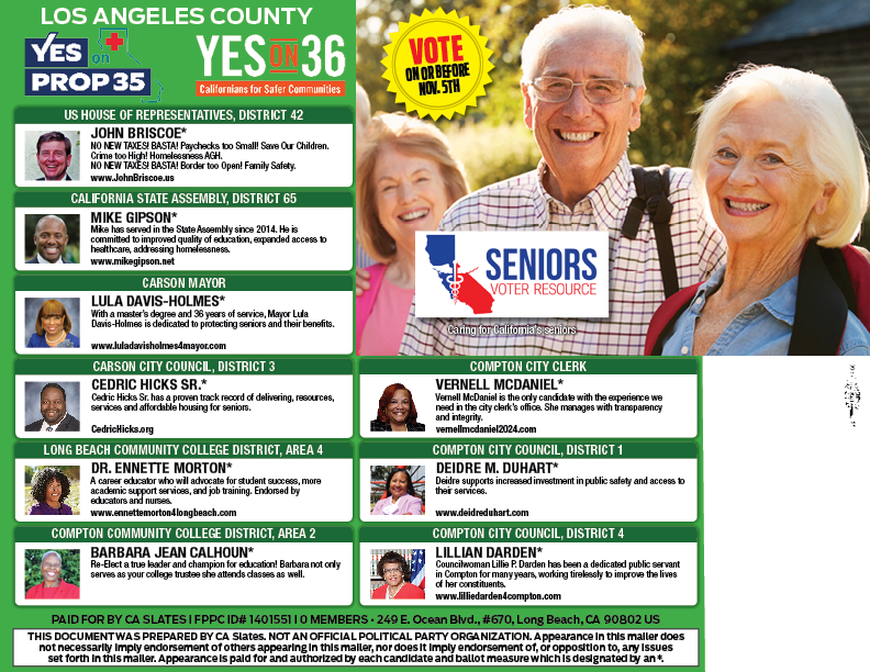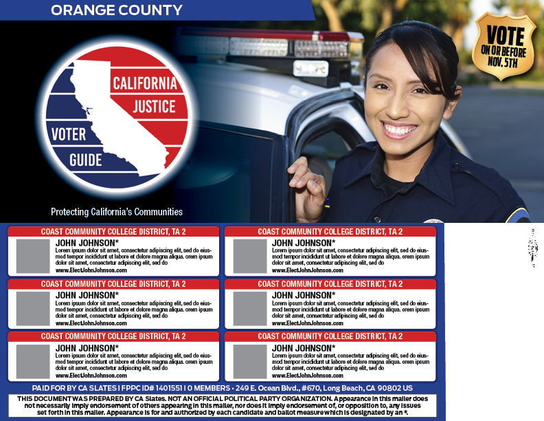 At CA Slates, we take pride in delivering high-quality, effective slate mailers and voter guides for California elections. Our samples showcase our commitment to excellence and our expertise in political direct mail.